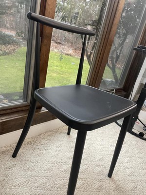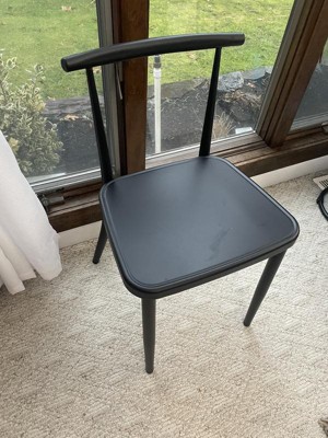 Northwood Metal Cafe Dining Chair - Threshold™ designed with Studio McGee Chair was super easy to assemble. screws + Allen wrench (supplied.) A little issue with putting the back/crossbar on - it just snaps on. Had to do some bodyweight pushing. The seat part is comfortable but the bar across the back isn't my favorite. I couldn't imagine sitting in this chair for a long period of time comfortably. Looks nice but I like a comfortable chair to sit in.