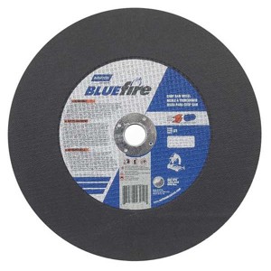 Abrasive Cut-Off Wheel, Abrasive Material Zirconia Alumina, Grit 30, Connector Size 1 in, Connector Type Unthreaded Hole, Overall Diameter 14 in, Overall Thickness 0.125 in, Compatible Tool Type Chop Saw, Primary Material Application Stainless Steel, Steel, Series BlueFire, Wheel Type Type 1, Maximum Operating Speed 4,365 RPM, Reinforced Status Reinforced