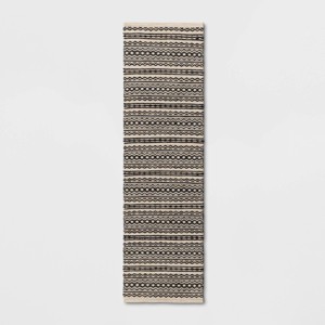 A: The rug is rectangular in shape, measuring 84 inches in length and 24 inches in width.