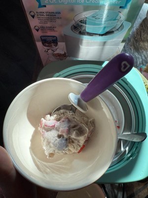 [This review was collected as part of a promotion.] I’ve been eager to learn how to make homemade ice cream, so I was thrilled to try this machine out! It’s incredibly easy to use, which is a huge help when experimenting with different recipes (which can be a bit challenging in itself). Here are some key tips I’ve picked up so far: make the base in advance and let it cool completely for hours before freezing the canister. You only need to click a button to get started and then just watch the magic happen. The 2 quart size is perfect giving enough ice cream servings for a family which compact enough to store away when not in use. I wish the machine canister was easier to remove from the frame and pop into the freezer or clean. I can’t wait to keep making more ice cream and refining my recipe!