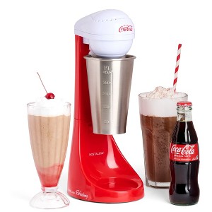 The Nostalgia MLKS100COKE Two-Speed Coca-Cola Limited Edition Milkshake Maker brings the old-time ice cream parlor right into the kitchen while making any Coke collector envois. It makes it easy to mix up a wide variety of milkshakes, malted milks, soda fountain drinks and even protein shakes and smoothies. Equipped with a 100-watt motor that's built with a durable 16-oz stainless steel mixing cup and mixing rod, this unit has a weighted base for added stability. The tilt-back head will allow you to easily access the mixing bowl so you can clean up any messes quickly, while the detaching spindle makes it easy to clean. Blending choices are endless and can easily be catered to your preferences. Simply make sure to add liquids first and then remaining ingredients. Whenever you begin blending, set it to low and speed up if needed.