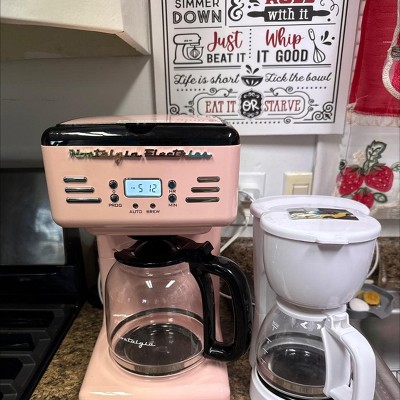 Start your morning out right and perk up your day with a freshly brewed pot of coffee! It features an easy-to-read backlit LED display and a push button control panel allows for easy programming on the 24-hour clock and delay timer. The 2-hour automatic shut-off is built in for added safety while the pause-and-serve lets you pour a cup of coffee while in the middle of brewing. Includes a reusable filter and removable filter basket.