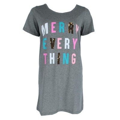 Be merry and bright this holiday season with this nightshirt. Made of a lightweight cotton blend, this shirt is a soft and comfortable piece to wear as you bundle up under the covers. It's partially sequined lettering adds a layer of holiday magic to this pajama shirt dress.Also available in ! Made of 60% Cotton, 40% Polyester