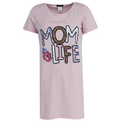- Pattern: Featuring a cute and relatable "Mom Life" design, this sleep shirt is made for moms who juggle it all