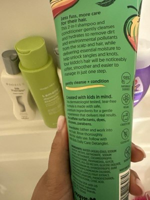 [This review was collected as part of a promotion.] I love this 2 in 1 shampoo and conditioner. It definitely leaves my daughter’s hair, super soft the smell is a plus tear free and no harsh chemicals like other brands a little product goes along way.