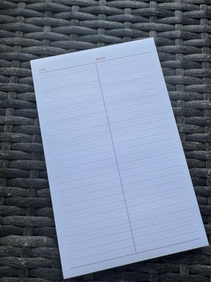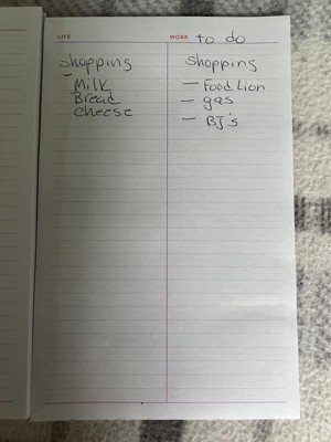 [This review was collected as part of a promotion.] I love when I find a product that increases my efficiency but I didn't know I needed. This pad of is definitely one of those things. I am always making lists so I don't forget to do something and this pad has lines and is divided horizontally into a "Life" section and a "Work" section. I work from home so my days are intermixed with doing "work" while also thinking of tasks that belong in my "life" section. This pad gives me a place to list both types of tasks. And if you don't need a "work" section, you could also use that side of the pad for breaking out specific "life" tasks hat you want to keep separate from the main list like "kids," "errands," etc. My only caution about this is that if you're someone with big handwriting, you might find the lengths of the writing space to be confining. Something else I really like is that I can stick this list in my planner and the post-it adhesive sticks where I put it. I used to use a regular piece of paper but it's really nice to have this stick in there and not fall out.