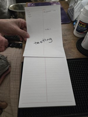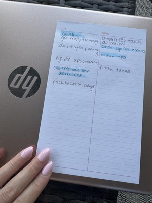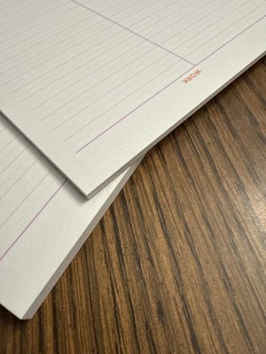 [This review was collected as part of a promotion.] I am a remote IT worker. So I definitely have plenty of to-dos that needed a list! I like how the soft pink lines on the pad made it easy to see the lines while writing, but when looking at a full sheet of text you can't see them, so they aren't causing a visual disturbance when reviewing my lists. There is room at the top to list the time/date if I wish. I have also used various pens, and haven't noticed a difference in writing smoothness. It works for all of them. I think it may be easier to use if the pad was slightly larger. A lot of times one side fills up faster than the other, so it is hard to feel like I used up enough space before moving on. These also have the sticky top on the back, so they are easy to post around the office as needed.