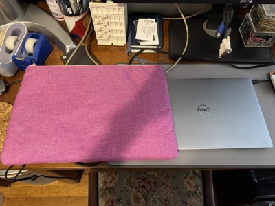 [This review was collected as part of a promotion.] This is the perfect size for my 14-inch laptop, with room left for some small accessories. I love the bright pink color, and the fabric seems like it will be very durable over the long run! It fits nicely inside the backpacks I use for travel so it's a great addition to my tech accessories.