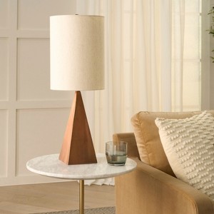Nourison 20.5" Walnut Wood Tapered Triangle Table Lamp