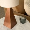Add a touch of modern sophistication to your space with this sleek table lamp. Featuring a triangular copper base and a neutral cylindrical shade, it offers a perfect blend of contemporary design and warm lighting. Ideal for bedside tables or accent spaces, this lamp elevates any room with its minimalist charm.