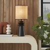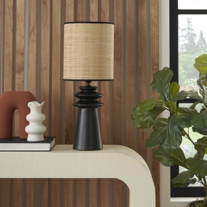 Nourison 22" Black Modern Tiered Ceramic Table Lamp with Straw Shade