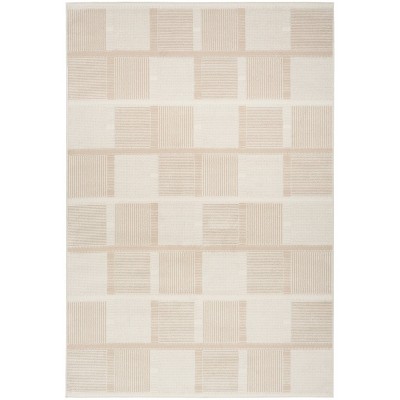 This Washable Essentials rug is the perfect blend of style and practicality. The ivory and mocha ground is made chic with subtle tonal variations, while the smoothly textured construction makes cleaning a breeze. Just toss this rug into your washing machine to keep it looking fresh. This lightweight rug is made from a blend of polyester and cotton fibers with bound edges and a ridged, recycled cotton back.