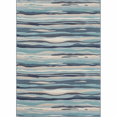 I just got this rug so I cannot attest to how well it will wear (why I gave it 4 stars for quality as too soon to tell). It appears to be well made, though, as I did not have a lot of loose threads come out of it when we rolled it out (a good sign that it will hold up). I love that it is abstract and not a specific pattern. It is just as pictured on the website, so I am most pleased with the colors. There is both light and dark blue threads, while the light blue is more predominant over the darker blue shades. Having the beige tones also in the rug gives my very grey room some warmth (my designer said I needed this). The cream, which may be a tad more predominant than the other colors, blends it all together and helps create neutrality. The size was just perfect (6' 7" by 9' 2") since this is a small one-bedroom apartment and so there is not a lot of length or width. I searched everywhere for something abstract like this rug that would fit my space and it was not easy. I would have preferred a straight 9 foot or maybe an 8' 10" because walls tend to be 9.5 to 10 feet and you don't necessarily want a rug that runs to close to your sliding glass door, but this is working well enough; it gives me about 12 inches to the vertical blinds. So happy I found it!
