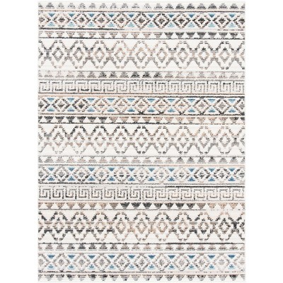 Nourison 5'3"x7'9" Oslo Shag Diamond Machine Woven Indoor Area Rug Ivory/Blue: Geometric High Pile, Scandinavian Style