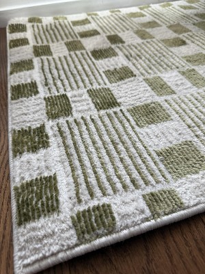 Infuse timeless elegance into your home with this green geometric rug from the Nordic Collection. The repeat square pattern and subtle sheen add a rhythmic feel to your space, while the simple color palette easily complements a variety of aesthetics. Expertly crafted in a low-profile construction that’s easy to clean – perfect for busy households with pets and young kids.