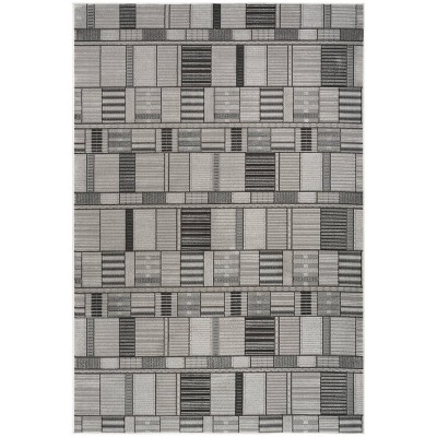 Nourison 5'x7' Reversible Basics Woven Indoor/Outdoor Area Rug Gray: Geometric Low Pile Flatweave for All Ages