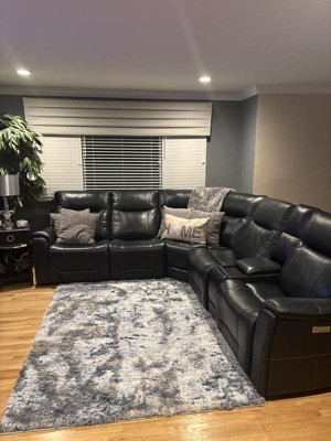 This rug is beautiful, fluffy & so soft. The colors are beautiful & accent my dark navy couch & gray walls. The rug looks amazing