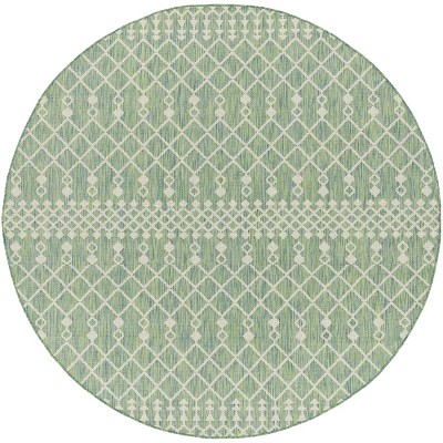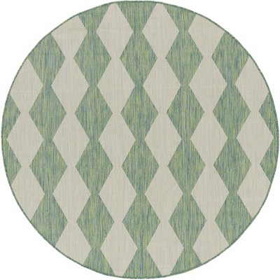 Nourison 6' x 6' Courtyard Modern Easy Care Flatweave Indoor Outdoor Round Rug Ivory Green