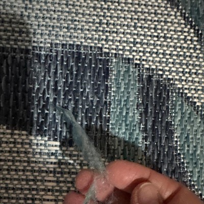 It’s a beautiful patio rug but it arrived shoved into a big box as if it had been unrolled and returned and it had four snags in the material. We are reluctantly keeping it bc we needed a patio rug but not thrilled we received a damaged rug.