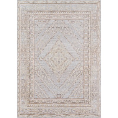 Nourison 7'10"x10'6" Oslo Shag Diamond Trellis Machine Woven Indoor Area Rug Ivory/Gray: High Pile Polypropylene, Latex Back