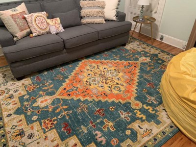 I absolutely ADORE this rug!! The beautiful bright colors making pulling from the color scheme and using them to decorate the rest of the space a breeze. The trendy style really brought my room together in such a beautiful way, connecting the colors of the room into one focal point. I love it!