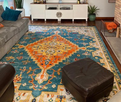 I absolutely ADORE this rug!! The beautiful bright colors making pulling from the color scheme and using them to decorate the rest of the space a breeze. The trendy style really brought my room together in such a beautiful way, connecting the colors of the room into one focal point. I love it!