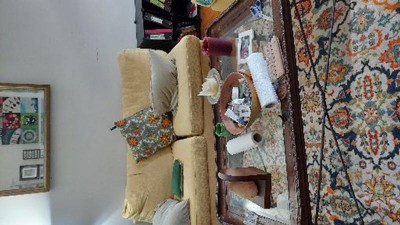 I really love the whole Moroccan, Bohemian chic look. I love it but affordability had to be key, too. I looked at many rugs. And I had to work around my very goldenrod loveseat. There were some that I saw that the coloring is beautiful but would be too ostentatious. I chose this one because it is colorful, but subtler with splashes of Moroccan reds and orange. And works well with my seating.