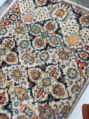 I wanted a traditional patterned rug but also wanted some pops of color. this rug perfectly fits my wishes. Neutral enough to go with my other furnishings, but the lovely pops of color warm it up! and if you want to get new accessories, you can pick up on those colors to emphasize them and tie your look together.