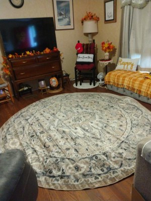 This rug is beautiful and will work great in our new home! We bought a gorgeous round tiger oak dining table and matching chairs and the rug is perfect to put under it. It matches better than expected and the nap is just right for being able to slide chairs. Thick enough to be comfy but low enough for us to move our chairs in and out when dining. We also bought the matching large area rug for our living room and are so excited to have these rugs for our new home. Our dog, Charlie, loves them, too! And his approval is important. Lol.