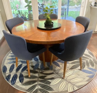 Ordered this rug and it arrived the next day! Beautiful colors, and just the right thickness. We have it under our dining table so we don’t want the pile too thick so chairs can slide easily. Fit our 60” round table perfectly. Reasonably priced too.