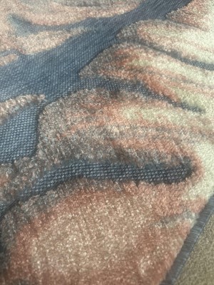This rug is absolutely gorgeous. I love the way the colors of the pattern blend like an actual piece of art. The pink gradient combined with the rich blue base gives me a retro meets tropical vibe, almost like 80s pop art. The pattern also has a nice, soft texture which helps break up the otherwise flatness of the rug.