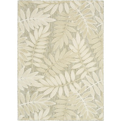 Bring a fresh and inviting burst of pattern to any space with this green, grey, white, and yellow outdoor rug from the Aloha Collection. The oversized floral pattern, enhanced by a high-low dimensional pile, creates a cheerful focal point for patio conversation areas and living rooms alike. This colorful rug is both stylish and functional in a 100% polypropylene construction that’s easy to clean, making it ideal for busy households with kids and pets.