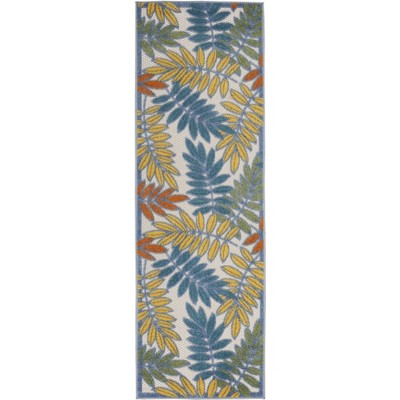 Nourison Aloha Contemporary Floral Flatweave High-Low Indoor Outdoor Runner Rug Blue/Multicolor 2'3" x 8'