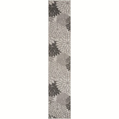 Nourison Aloha Contemporary Floral Flatweave High-Low Indoor Outdoor Runner Rug Grey/Blue 2'3" x 12'