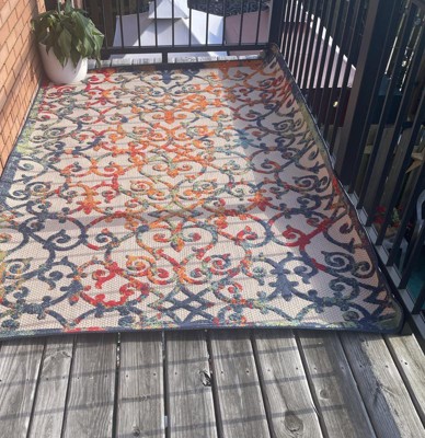We absolutely couldn't be happier with this rug for our outdoor space. Vibrant colors and easy care. Wish I would have gotten one sooner. It's absolutely beautiful!