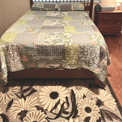 I have bought many of these indoor outdoor rugs but nothing this nice it actually has texture and soft flowers. It's really nice! I can't vouch for how it will wash but I imagine it will be fine:-)