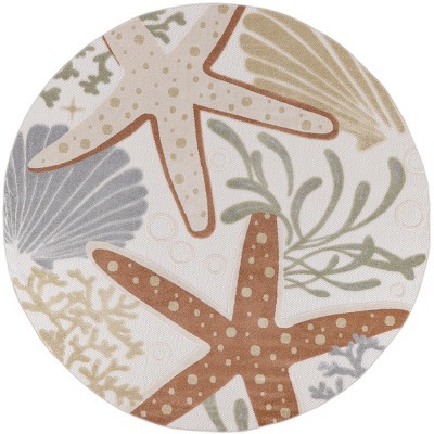 Nourison Aloha 7'10" x Round Ivory Multicolor Outdoor Floral Flatweave Indoor/Outdoor Area Rug