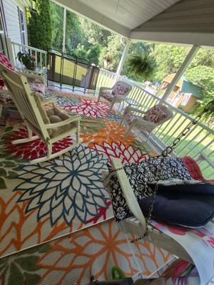 This rug has received high praise for its vibrant colors, quality, and ability to enhance various spaces, from patios to living rooms. Guests appreciate its durability and ease of cleaning, making it a practical choice for both indoor and outdoor use. Many have noted how it brightens up their areas and complements their decor beautifully. However, some guests mentioned the need for rug padding and concerns about its thickness.