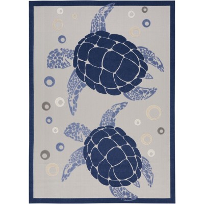 Nourison Aloha Floral 7'10" x 10'6" Ivory Navy Tropical Indoor/Outdoor Area Rug