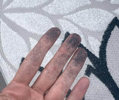 Absolute garbage. I have had this rug for less than 4 months and the dark colors are bleeding all over feet and being tracked on the deck and through the rug. Blue footprints everywhere. Super disappointed in Target for not returning this item because it’s slightly outside the return window. I didn’t even get 1 season of use. Save your money and do not buy! You can see from the pictures what it did to my driveway after I sprayed it off.