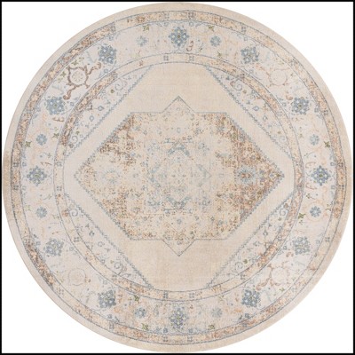 Nourison Aloha Floral 5'3" x Round Natural Tropical Indoor/Outdoor Area Rug