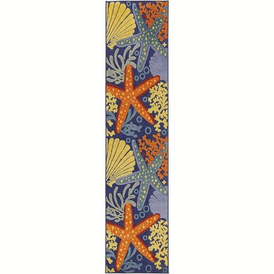 Nourison Aloha Floral 2'3" x 8' Blue Multicolor Tropical Indoor/Outdoor Area Rug
