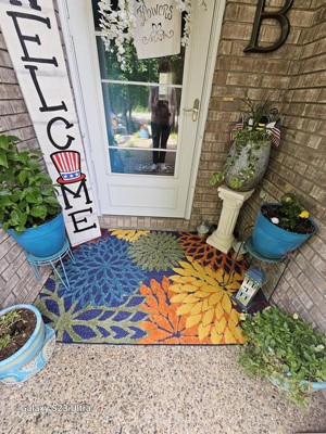 - BOLD STYLE: The oversized blooms of this floral outdoor rug are enhanced with a high-low pile that adds an attention-grabbing pop of pattern to your decor.
