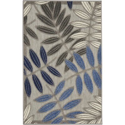 Nourison Aloha Floral Easy Care Flatweave High-Low Indoor Outdoor Area Rug Grey/Multi 7'10" x 10'6"