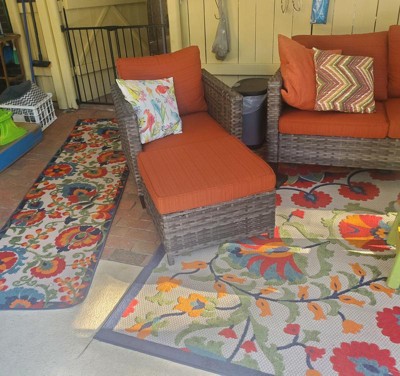 This vibrant and colorful rug has captured the hearts of many guests with its stunning design and quality. It's perfect for adding a pop of color to outdoor spaces like patios and decks, and many guests appreciate its quick-drying feature. However, some have noted that the colors may fade over time, especially when exposed to direct sunlight. Overall, it's a beautiful addition to any space, offering both aesthetic appeal and functionality.