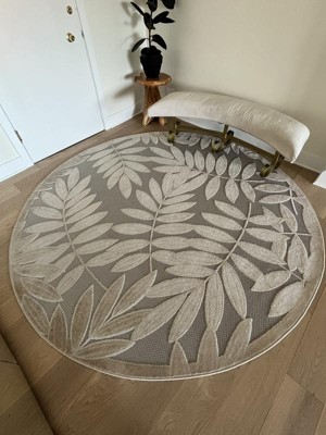A cheerful and charming oversized leaf design is a fun, flirty, and fashionable way to uplift any environment, especially when presented in complementary hues. This Aloha indoor/outdoor area rug from Nourison is created from premium stain-resistant fibers for long wear, low maintenance, and a splendid texture.