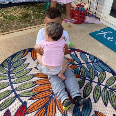 Love this rug! Colors are bright and vivid. Soft to walk on. Just love the pops of color on my deck!