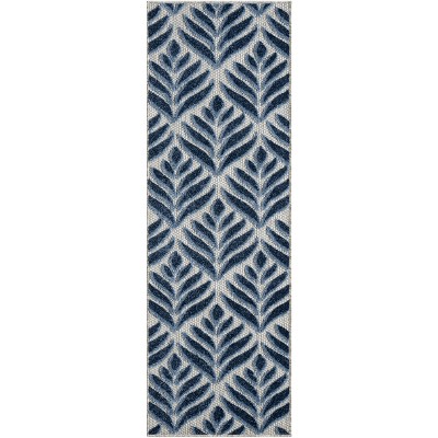 Nourison Aloha Floral Textured Flatweave High-Low Indoor Outdoor Runner Rug Natural/Blue 2'3" x 12'