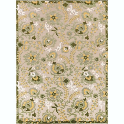 This rug has a unique texture with the leaves being raised. The natural color palette is calm and soothing. Between the colors and the print, it adds some tropical flair to our porch. Looks like it will be fairly easy to clean. Looking forward to enjoying it outdoors!