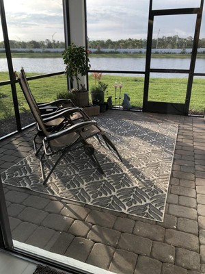 I recently purchased the Nourison Aloha Tropical Palm Outdoor Rug in grey and I couldn't be happier with my purchase. One thing I particularly love about this rug is the tropical palm pattern. It's a subtle touch that adds a bit of personality to my outdoor space without being too overwhelming. The rug also feels very soft and comfortable underfoot, which is a nice touch when you're spending time outside.